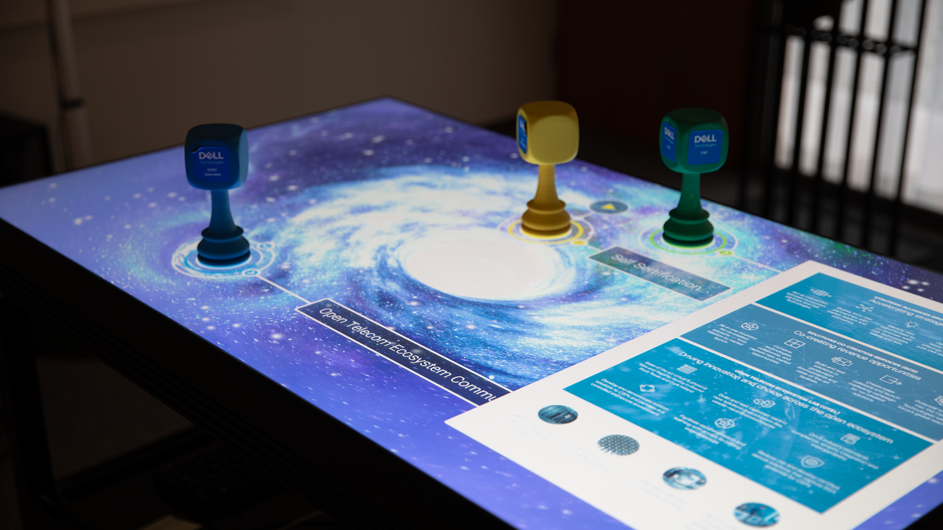We were in charge of the graphic design and how the content was placed across the 55-inch display; and designing the usability of the solution so that multiple users could operate the touchscreen desk at the same time. We also created the laser-printed chess pieces to represent various elements of Dell’s partner network and the benefits of joining the network.